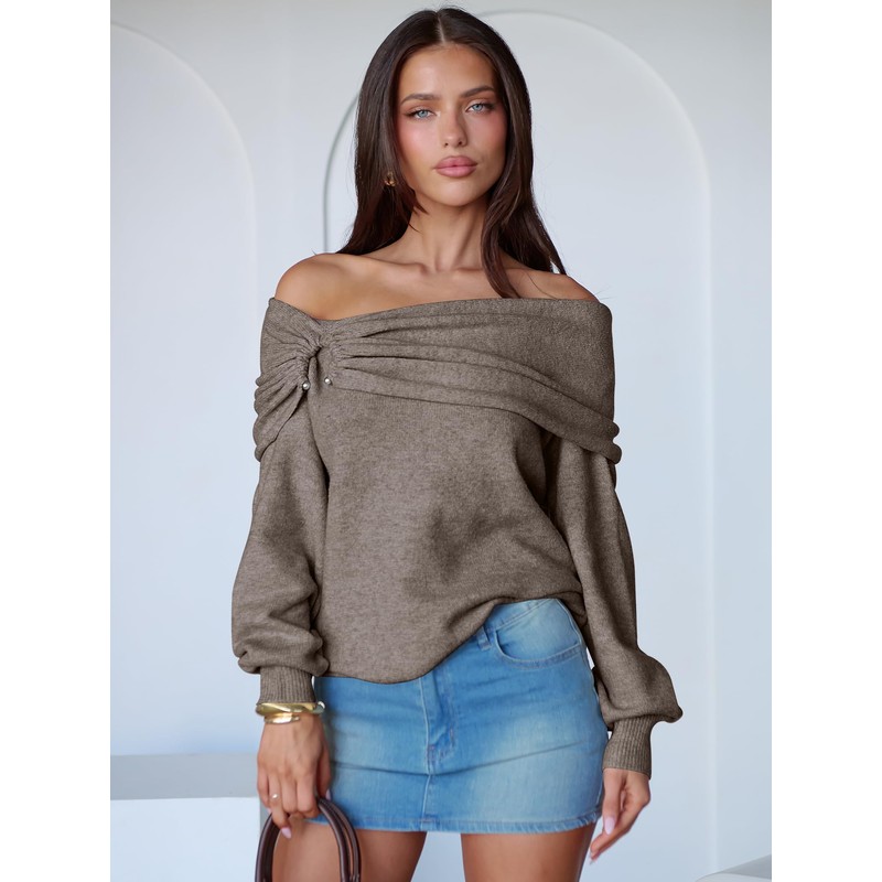 ANRABESS Womens Wool Blend Off The Shoulder Long Sleeve Soft Knit Sweaters 2025 Fall Outfits Camel Medium
