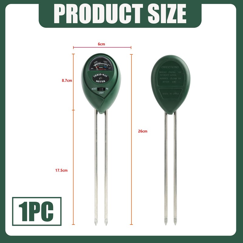 • 3-in-1 functionality: with this 3-in-1 soil pH meter, you can measure soil moisture, soil pH and sunlight. Ideal for monitoring the needs of factory and garden plants