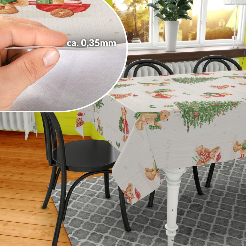 ANRO Oilcloth Tablecloth Christmas Tablecloth Washable Oilcloth Christmas Wax Tablecloth Teddy Bear 100 x 140 cm