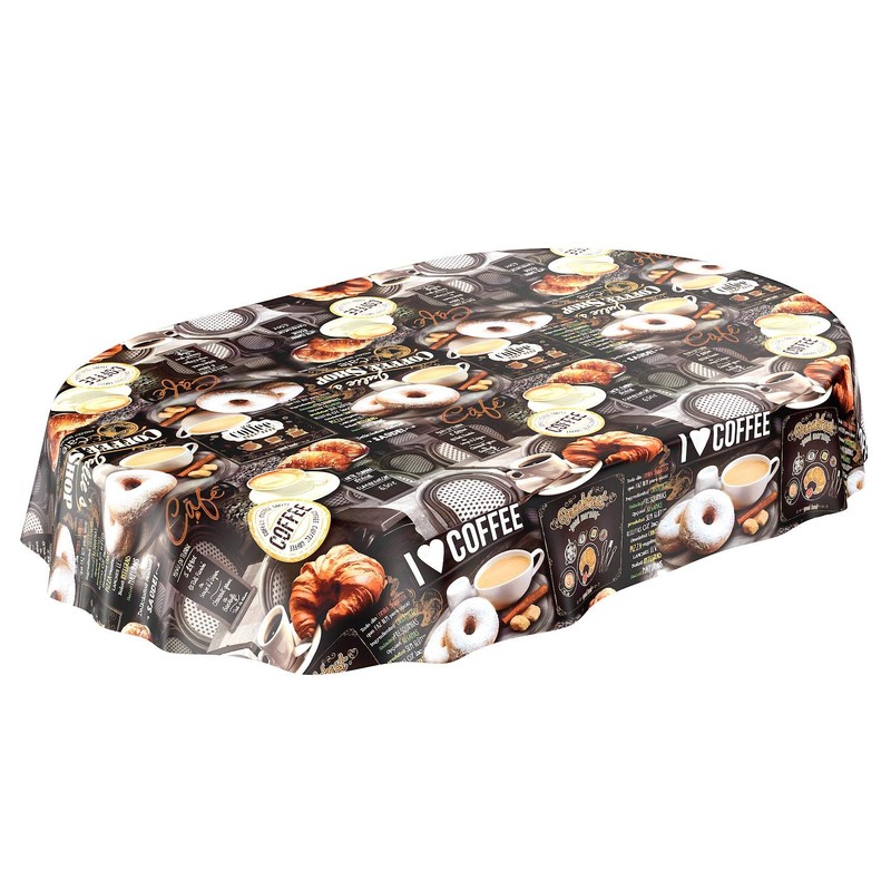 ANRO Oilcloth Tablecloth Oilcloth Tablecloth Washable Coffee Sweets Donuts 120 x 140 cm Dark Grey
