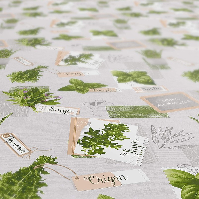 Anro Oilcloth Tablecloth, Wax tablecloths Washable, Herbs Green Beige Organic Basil