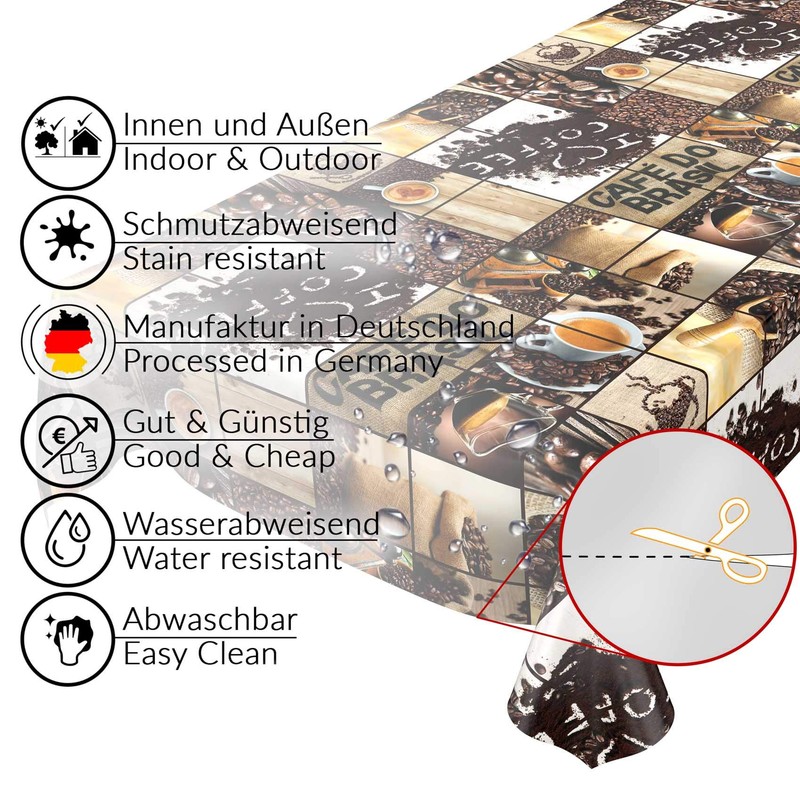 - This wipe-clean tablecloth is suitable for celebrations, parties, as well as for everyday use in the kitchen, dining room, garden, balcony or camping, and as a craft mat. It protects your table against dirt and scratches