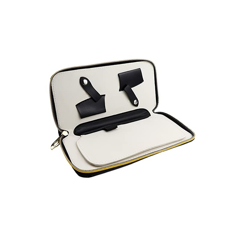 ANRONCH Black Leather Zipper Scissors Bag, Salon Hairdressing Scissors Storage Bag Hairdresser Barber Salon Tools Holster Bag - Hold 4 Scissors Hairdressing Kit