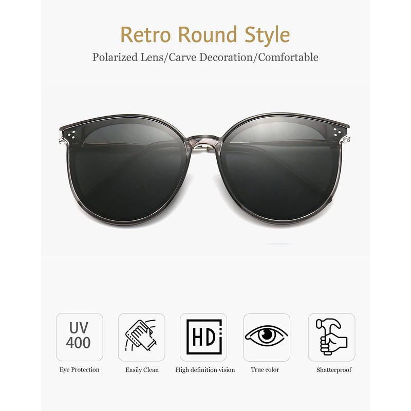 ANRRI Oversized Retro Round Polarized Sunglasses for Men and Women UV400 Glasses with Grey Frame