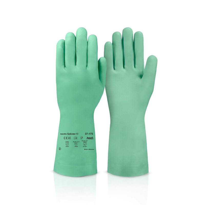 Ansell Alphatec Solvex 37-175 Nitrile Chemical-Resistant Gloves for Cleaning, Agriculture, Food, Mechanics - XS (6), Green (1 Pair)
