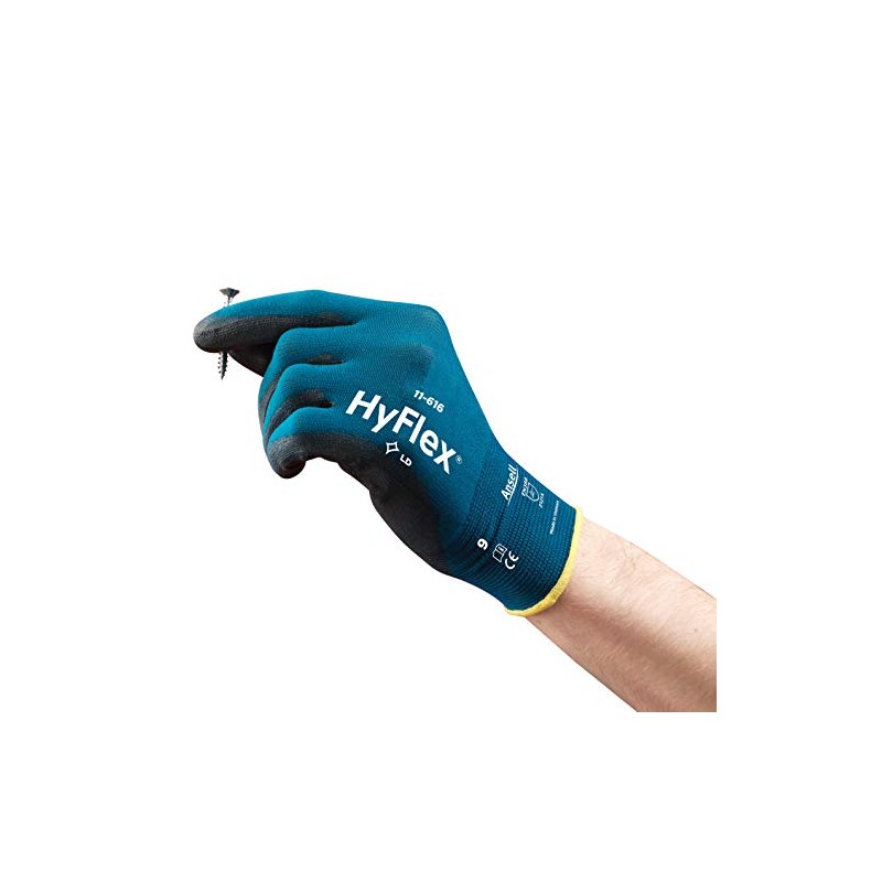 Ansell HyFlex 11-616 Multi-purpose gloves, mechanical protection, Black, Size 6 (Pack of 12 pairs)