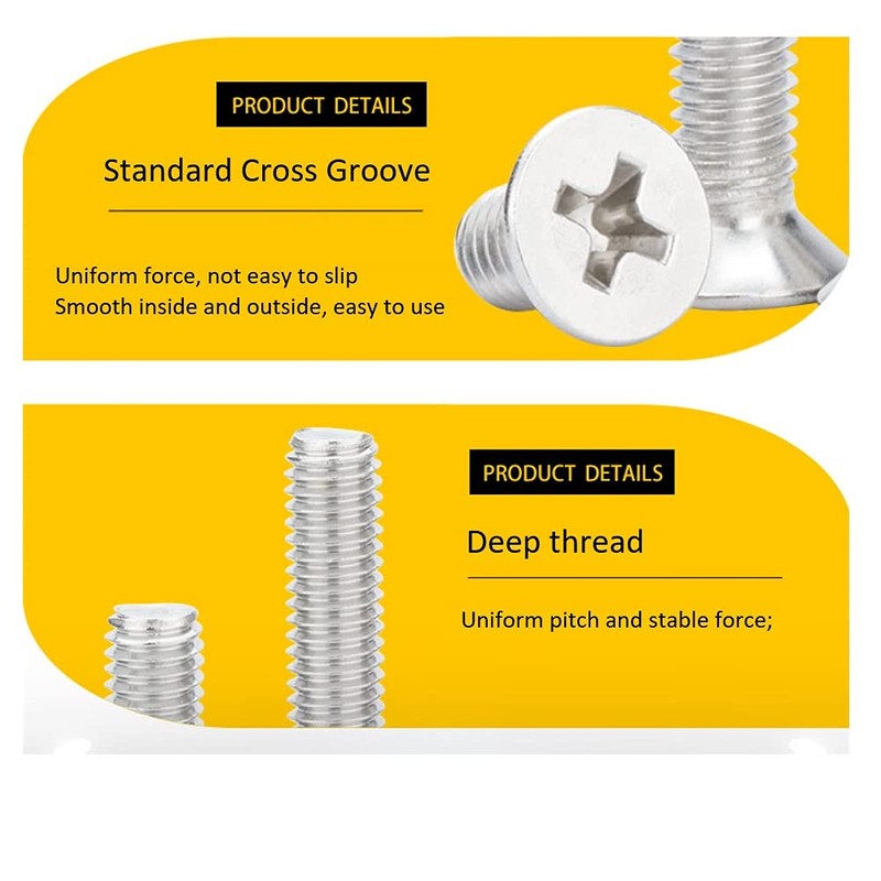 - Features: This cross groove and countersunk head design is easy to lock, and will not slip when tightened firmly, the screw will not protrude, and it is beautiful and scratch-resistant.