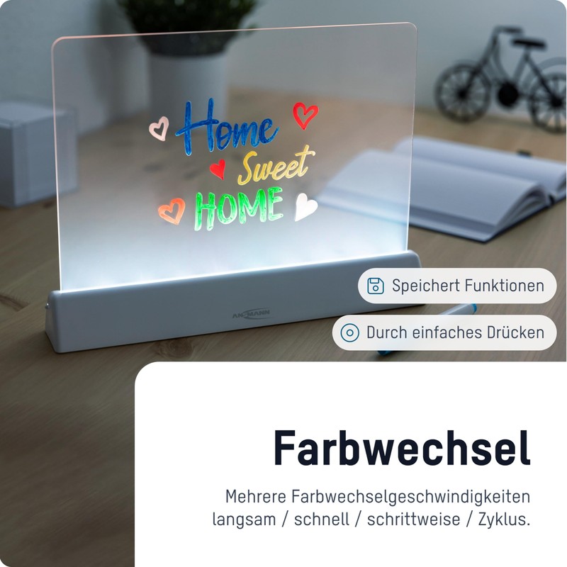 Ansmann 1600-0605 LED Decorative Drawing Board with Multiple LED Light Functions, Design Accessories as Decorative Light, Luminous Drawing Board for Varied Painting Fun, White