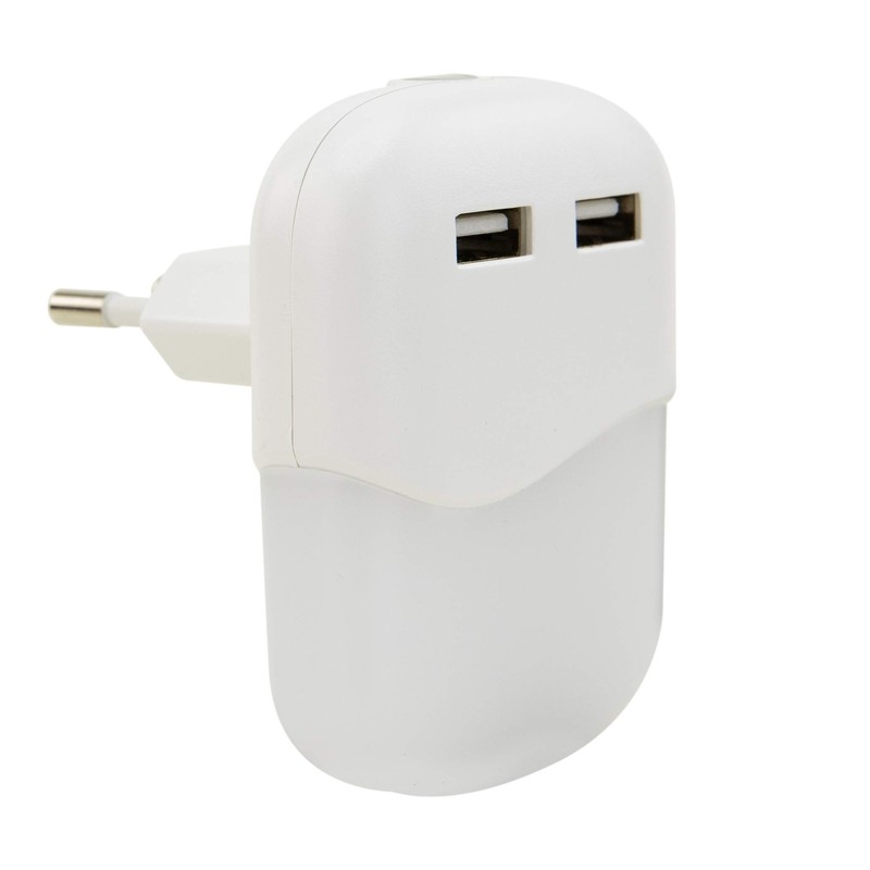 ANSMANN LED Night Light with Twilight Sensor & 2 x USB - LED Light - Orientation Light with Light Sensor - Night Light Socket as Lighting for Bedroom, Kitchen, Bathroom, Hallway, Cellar & Garage