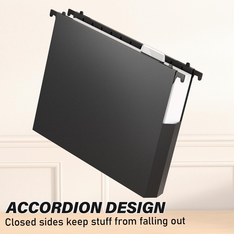 - 【REINFORCED BOTTOM】: Our expandable file folder hanging comes with a 2 inch black insert gasket,great support from the bottom that prevent files from sinking or bulging.