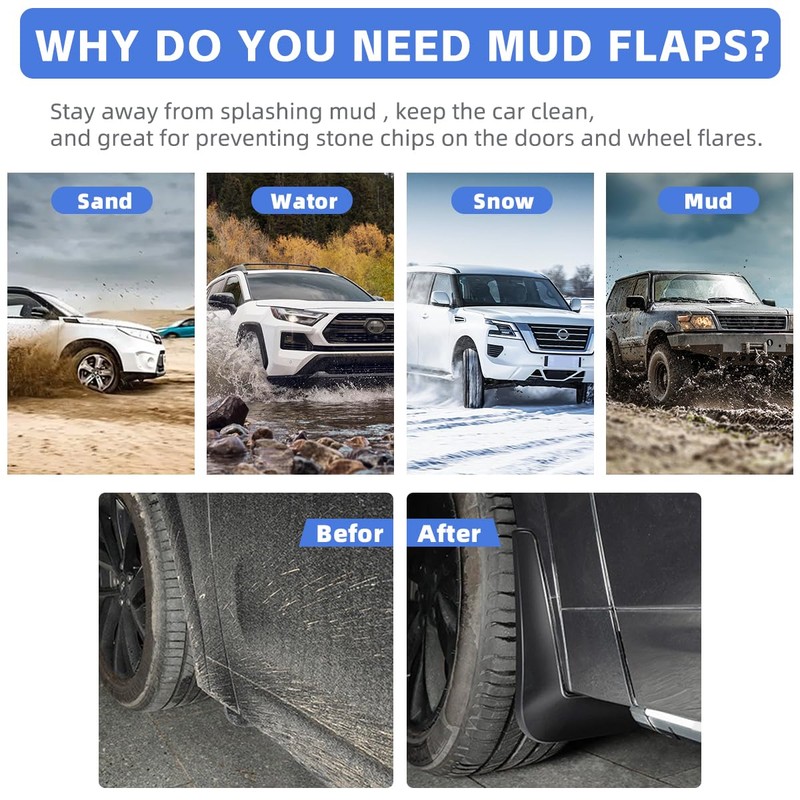 - EASY TO INSTALL — A few screws and a few minutes are all it takes to mount Mud Guards for a perfect match to your vehicle every time.