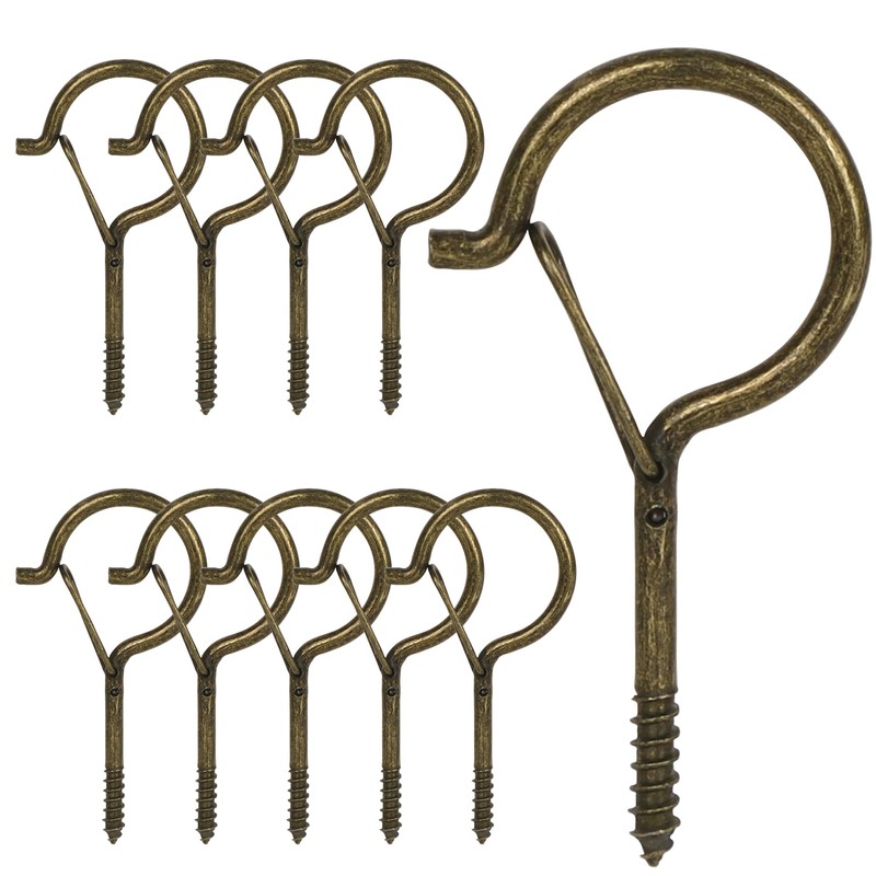 Ansxiy 10 PCS 3 inches Q-Hanger Hooks with Safety Buckle, Screw Hooks for Outdoor String Lights, Ceiling Hooks for Hanging Plants, Bronze