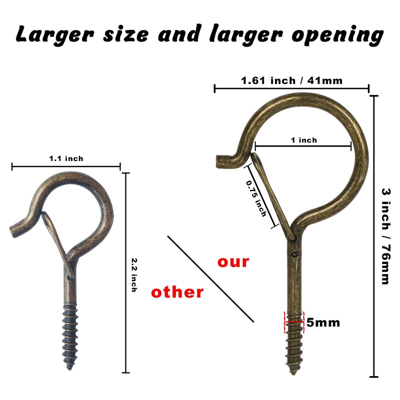 - Large Q-hanger - The enlarged size is 3 inches and has a larger opening for easier hanging. Suitable for outdoor lights, patio lights, Christmas lights, plants, bird feeders and houses, flower post, wind chimes, etc.