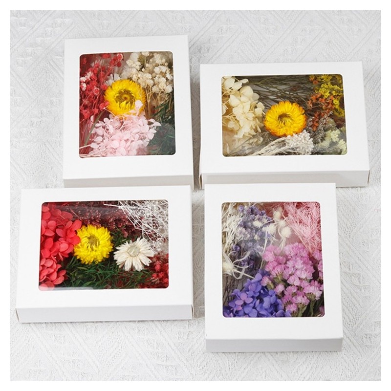 [Ant Logistics] Transparent window gift box case packaging supplies towel square white day gift box kraft gift box Flower White (Large) 10ea