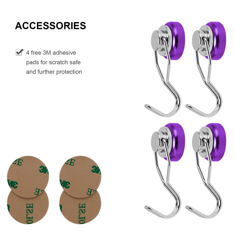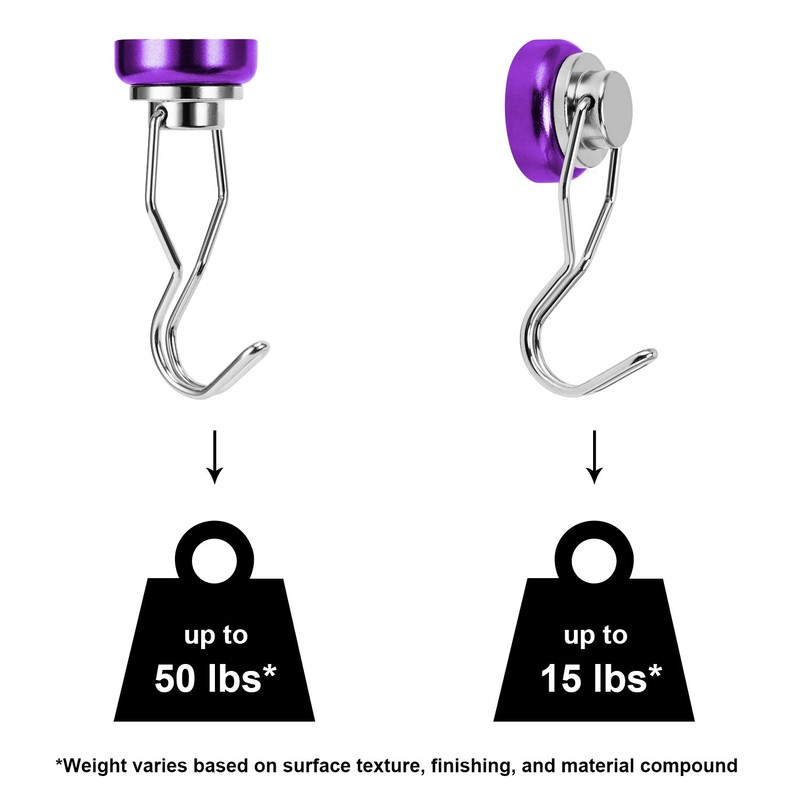 Ant Mag Swivel Magnetic Hooks 50lbs Heavy Duty Grill Magnet Hooks 4 Pack with Scratch Proof Stickers Great for Home Refrigerator Kitchen Store Grill BBQ Office Warehouse (Purple)
