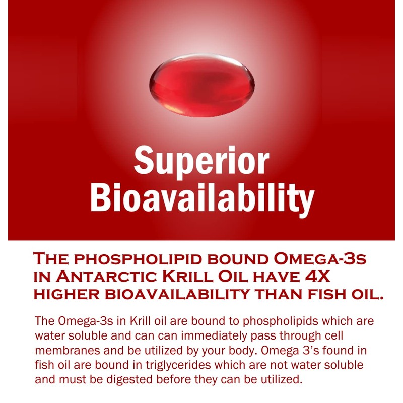 - 4X HIGHER ABSORPTION! Phospholipid Bound Omega-3s in Antarctic Krill Oil has 4X higher bioavailability than fish oil. Supports healthy eyes, brain, heart, joints, and skin