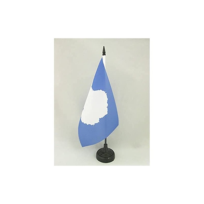 Antarctic Table Flag 5'' x 8'' - Antarctic continent Desk Flag 21 x 14 cm - Black plastic stick and base - Drapeau Antartique AZ FLAG