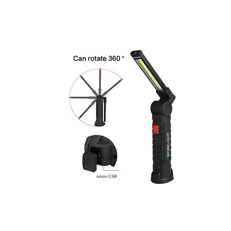 AntDau71 - USB Rechargeable LED Inspection Lamps Work Folding Flashlight with Magnetic Clip and Hook for Car/Camping/Home and Emergency Use [Energy Efficiency Class A++] COB