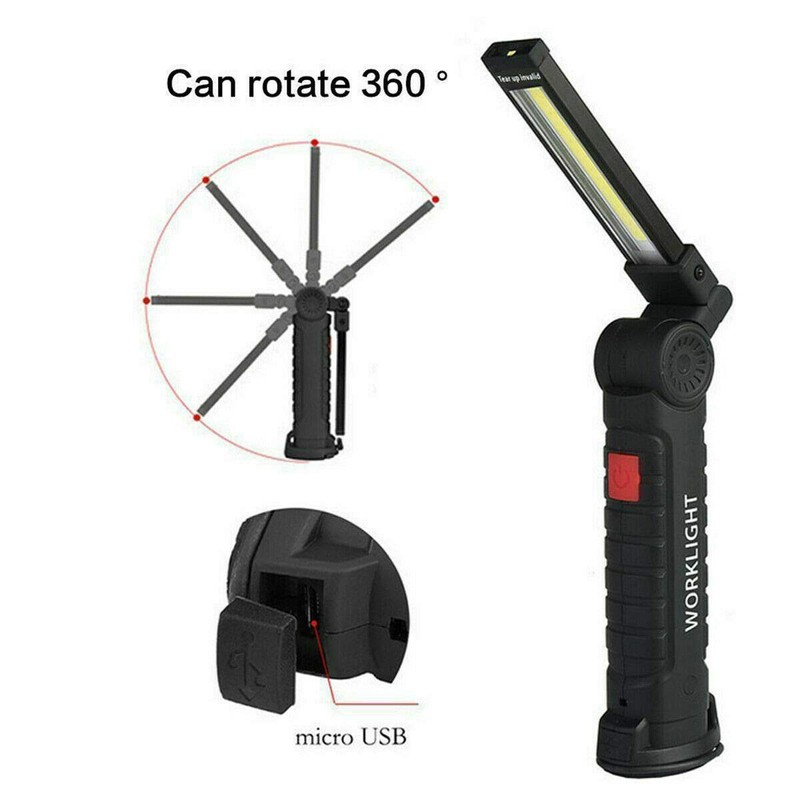 AntDau71 - USB Rechargeable LED Inspection Lamps Work Folding Flashlight with Magnetic Clip and Hook for Car/Camping/Home and Emergency Use [Energy Efficiency Class A++] COB