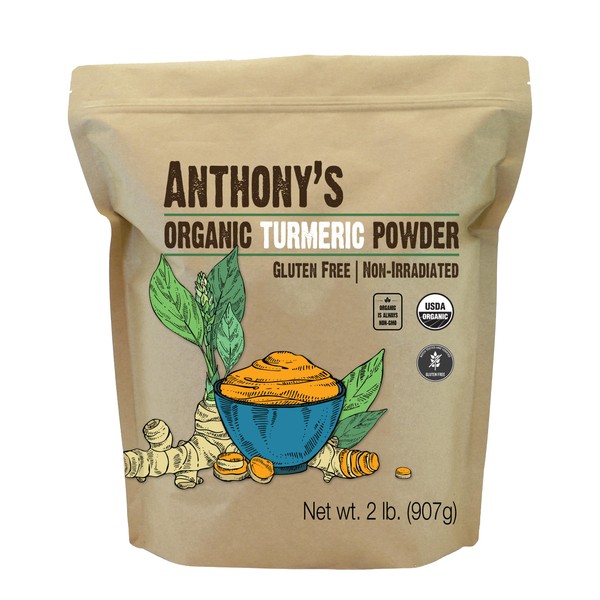 Anthony's Organic Turmeric Root Powder, 2 lb, Curcumin Powder, Gluten Free & Non GMO (Pack of 1)