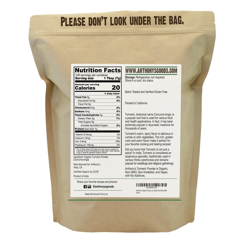 Anthony's Organic Turmeric Root Powder, 2 lb, Curcumin Powder, Gluten Free & ...
