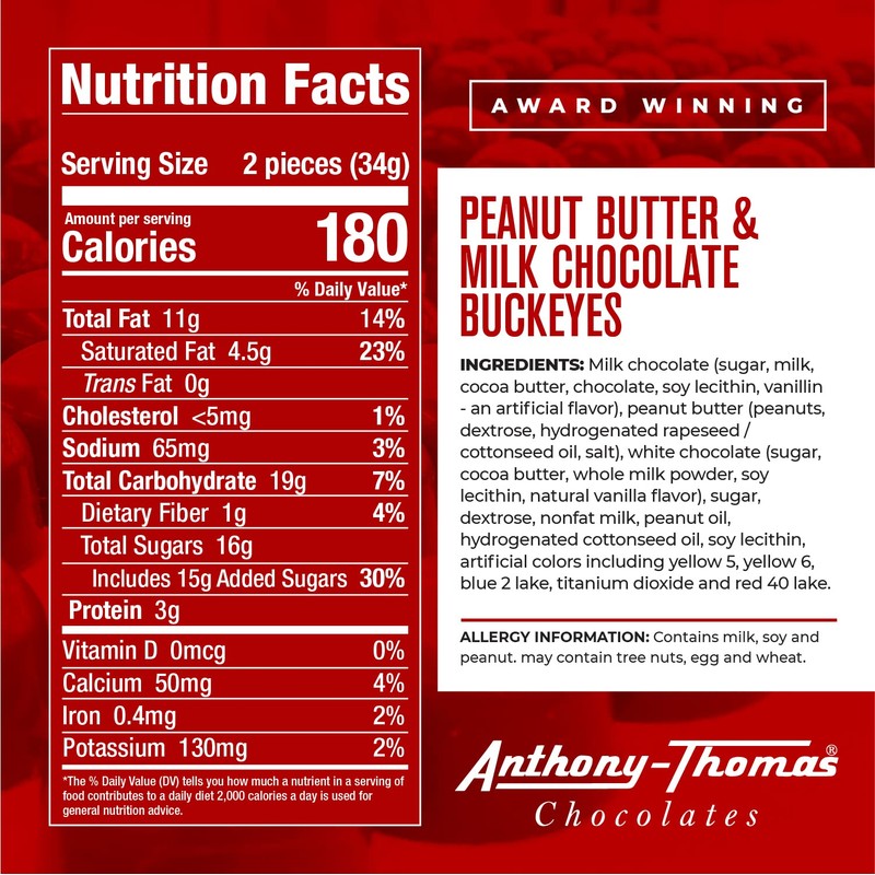 - Premium Quality Chocolate Buckeyes: These high quality Anthony Thomas peanut butter and milk chocolate buckeyes are made with only the highest quality ingredients for the best indulgent flavor!