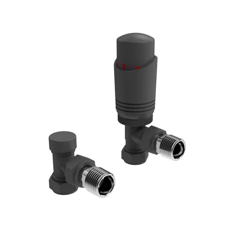 - High quality all anthracite thermostatic radiator valves in durable powder coat finish