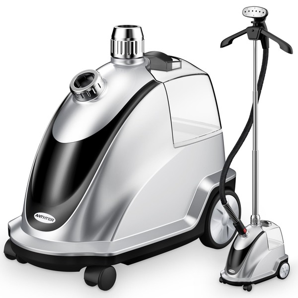 Anthter Steamer for Clothes, 1500W Powerful Standing Garment Steamer with Roll Wheels, 2.4L Water Tank for 90 Mins Continuous Steaming, 35s Fast Heat-up (Silver)