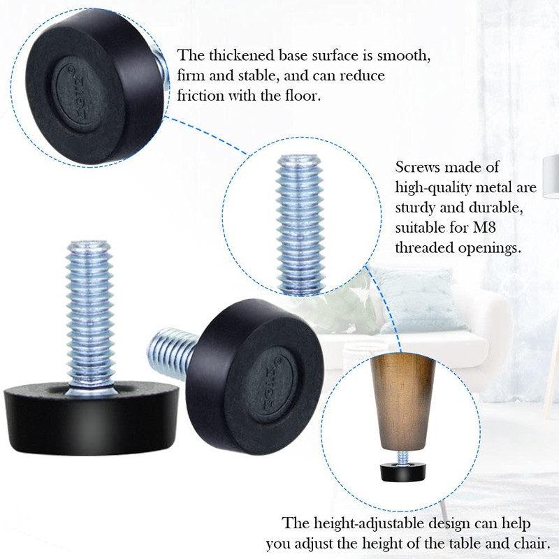 • Levelling foot for furniture feet: can be used on tables, chests, chairs, desks and a variety of other pieces of furniture. Total 20 pieces M8 adjustable furniture legs, enough for your daily needs.