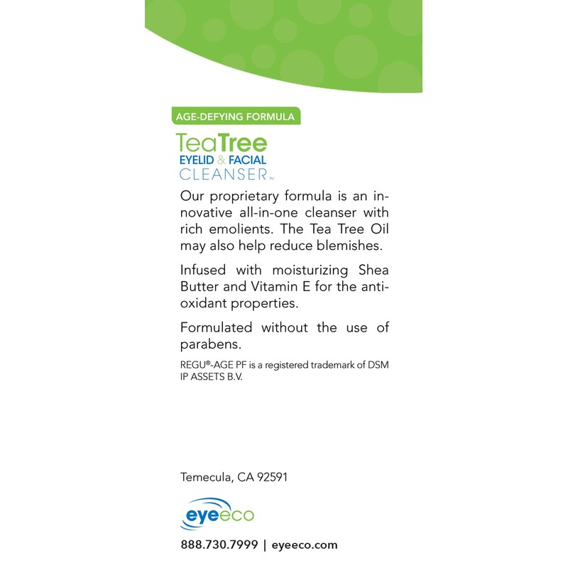 Eye Eco Age-Defying Tea Tree Eyelid and Facial Cleanser –Hydrating & Non-Irritating Cleanser – Infused with Shea Butter & Vitamin E - Vegan and Gluten-Free - 50mL
