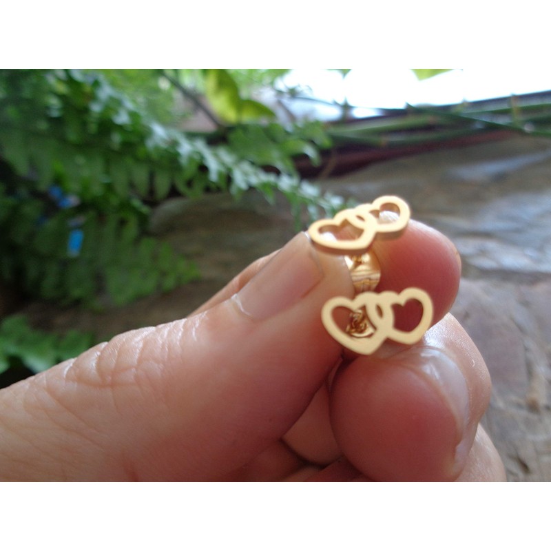 Anti-allergic open hearts in gold stainless steel studs, gold earrings, love, hearts, anti-allergic, studs, double heart, mother love, anti-allergic