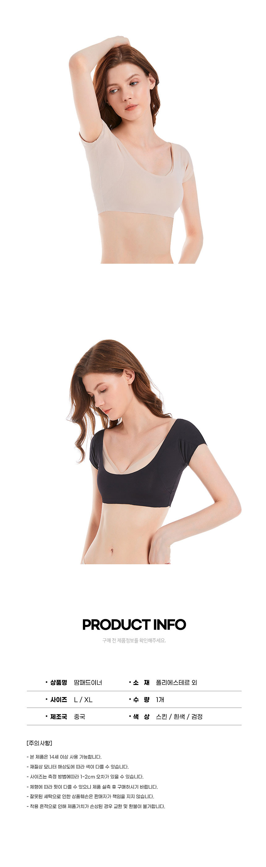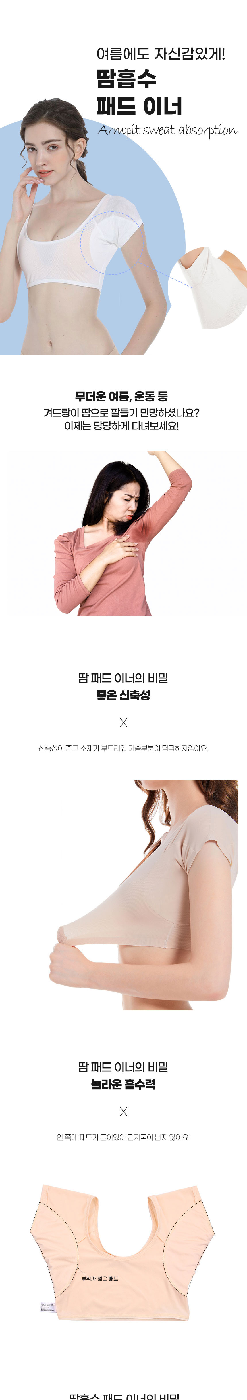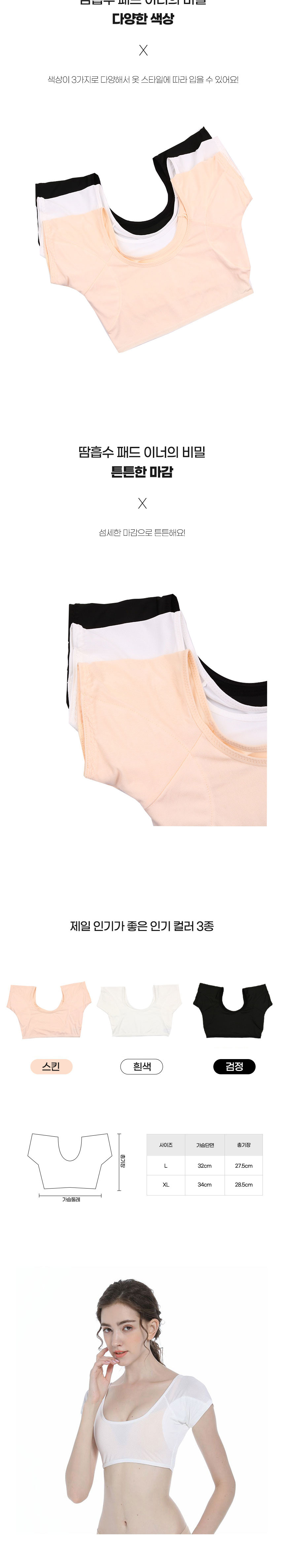 겨땀 방지 겨드랑이 땀 흡수 패드 패치 이너 속옷 - 05땀패드이너-검정L