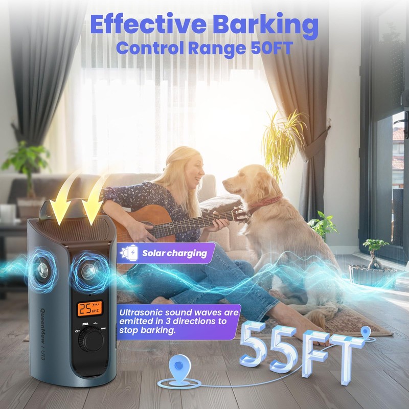 Anti Barking Device,50FT Bark Guard,Solar ChargingUltrasonic Dog Barking Deterrent Device,3 in 1 Handheld Ultrasonic Stop Dog Barking Device, Ultrasonic Dog Repeller Indoor Outdoor Bark Deterrents