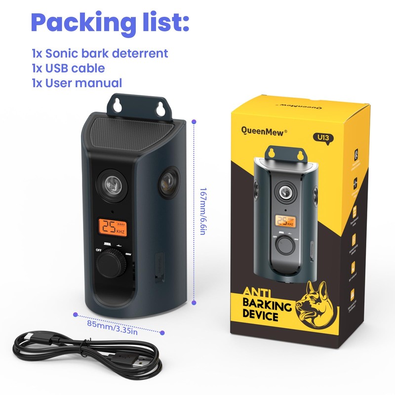✅🐣Automatically detects barking and emits ultrasonic sound to stop barking.