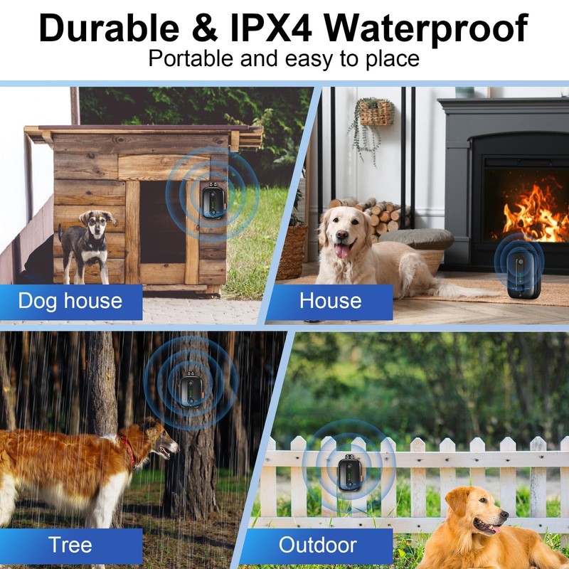 - 【Durable outdoor design】: This bark control device outdoor is made of weather resistant materials to ensure stable operation under various weather conditions. Whether it's rainy or sunny days, the equipment can maintain good operating condition. Especially for users with large gardens or terraces, the wide coverage of the device ensures effective suppression of barking even at long distances, making it an ideal choice for long-term use.