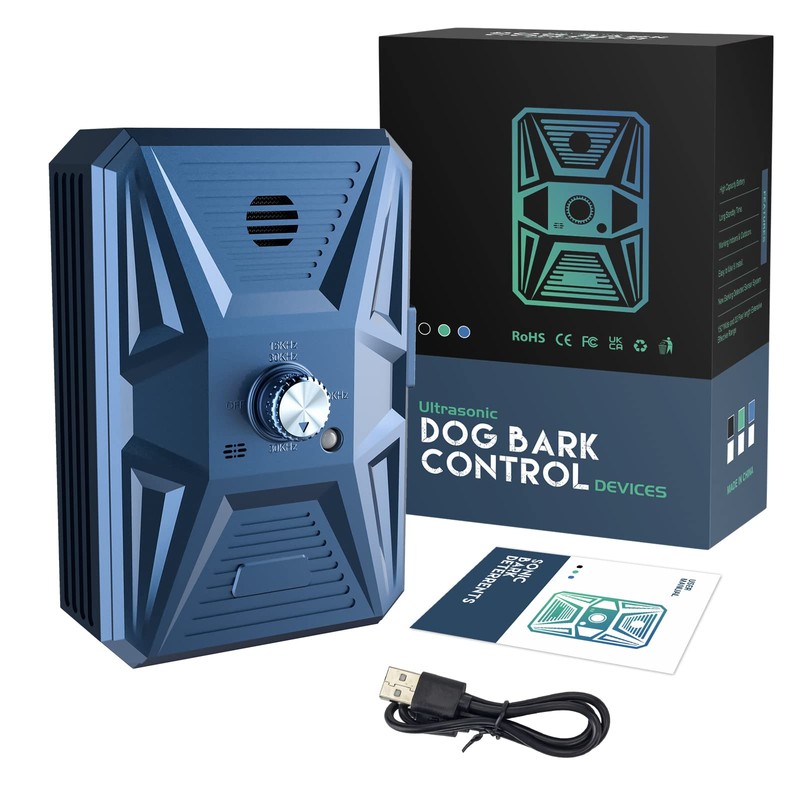 Tired of your dog's constant barking. Do you feel physically and mentally exhausted but helpless due to your dog's bad behaviour? indiscriminately destroy, scream, urinate and dig in the ground. This anti-bell device for dogs is your best choice. Our ultrasonic dog barking is designed to provide pet owners with a more professional and humane way to train their pets and help dogs get rid of bad behaviour permanently. Function: √ Three adjustable frequencies for dogs of all breeds. Up to 33 feet effective control range. Portable design with hooks can be hung on the wall, tree and door for indoor and outdoor use. Equipped with USB cable and high capacity rechargeable battery, durable and long battery life. IPX4 waterproof rating can be used during normal training in rainy or snowy weather. Ultrasound is safe and safe for dogs and humans. Three adjustable frequency modes. Variable frequency mode: 15-30KHz for big naughty dogs Fixed frequency mode: 20 kHz for docile dogs Stable frequency mode: 30KHz for small dogs Please note: 1. Not recommended for use on dogs with hearing problems and simultaneous use on two or more dogs. 2. Some dogs may be afraid of ultrasound at first or dislike it. Please plan up to 2 weeks for training. 3. It is recommended to change the ultrasonic frequency every ten days. 4. Should the anti-bark for dogs be placed where dogs bark most often without obstacles between them and the dog. Packing list: 1 x anti-barking ultrasonic device. 1 x USB cable. 1 x user manual (English language not guaranteed). 2 x mounting screws and dowels.