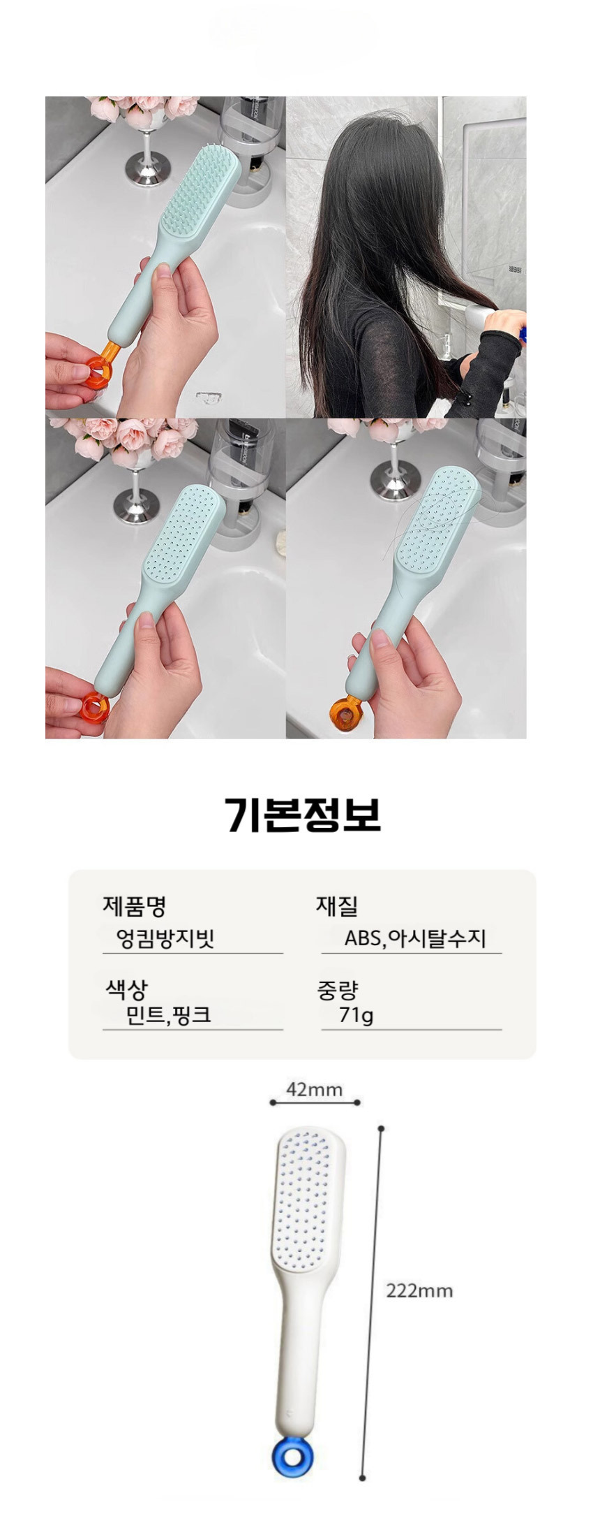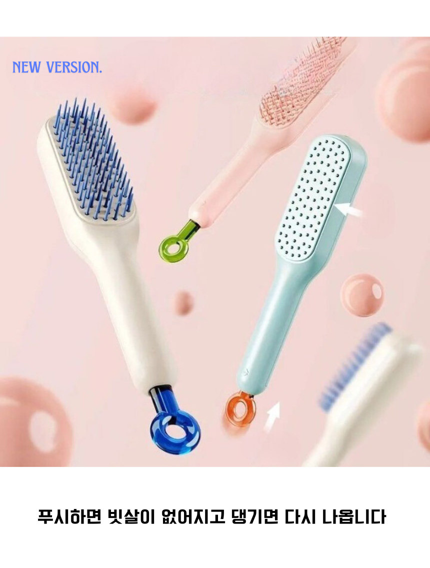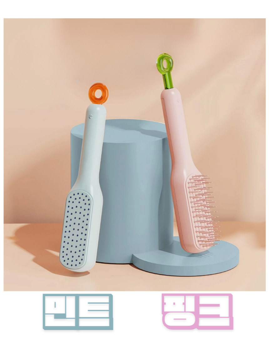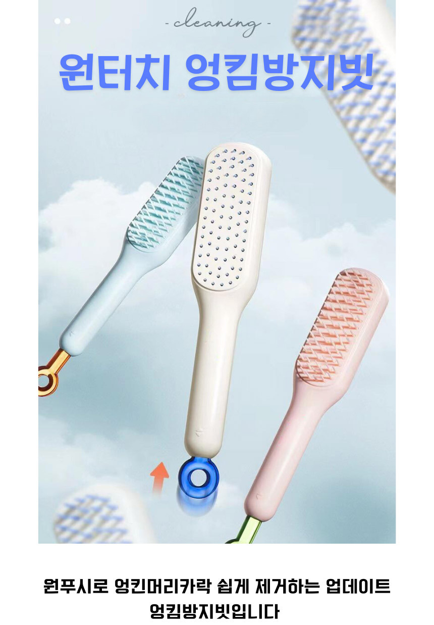 곱슬엉킴방지 원터치청소머리빗 - 핑크