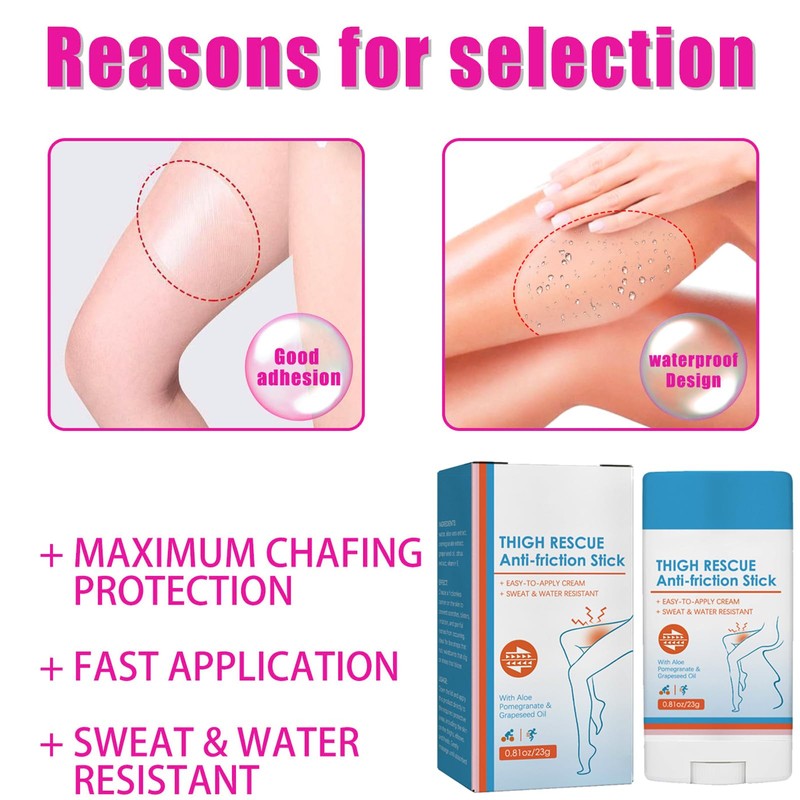 - FULL BODY COMFORT This anti chafing pen prevents and relieves chafing problems caused by bra straps, belts or shoes. Apply it to your thighs or other areas sensitive to chafing and enjoy smooth and smooth skin.