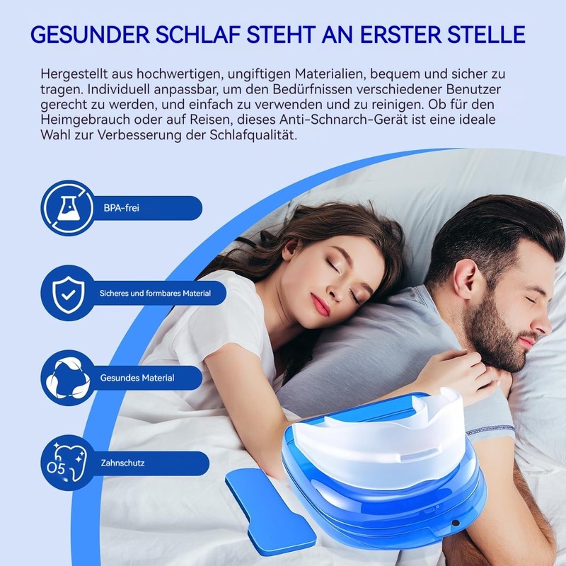 - Sicher und ohne Nebenwirkungen: Anti-Schnarch-Geräte wurden von Zahnärzten und Ärzten entwickelt. Sie bestehen aus medizinischem Silikon, sind geruchs- und BPA-frei und bieten Ihnen die sicherste und hygienischste Möglichkeit, Ihr Schnarchen zu verhindern.