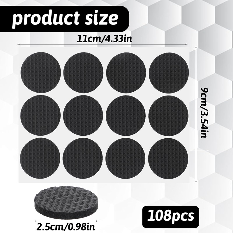 Anti Slip Furniture Pads 108 Pcs Self-Adhesive Rubber Feet 1" Round Furniture Feet Anti Skid Rubber Pads Grippers for Chair Bed Couch Table Legs Floors Protectors, Black