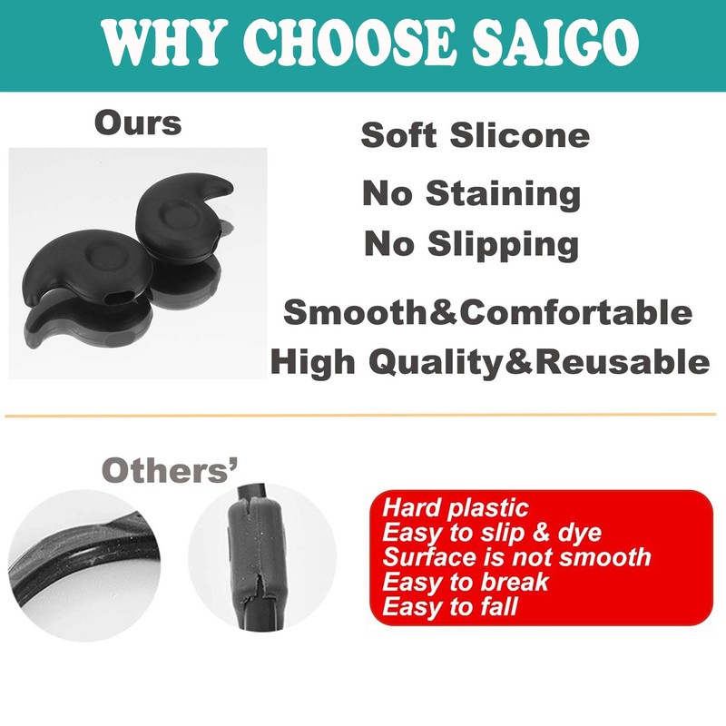 Anti-Slip Glasses Ear Hook Grip,SAIGO Eyeglasses Retainers Anti-slip Protectors Comfort Eyewear Spectacle for Sunglasses and Glasses,10 PAIRS,Black/White
