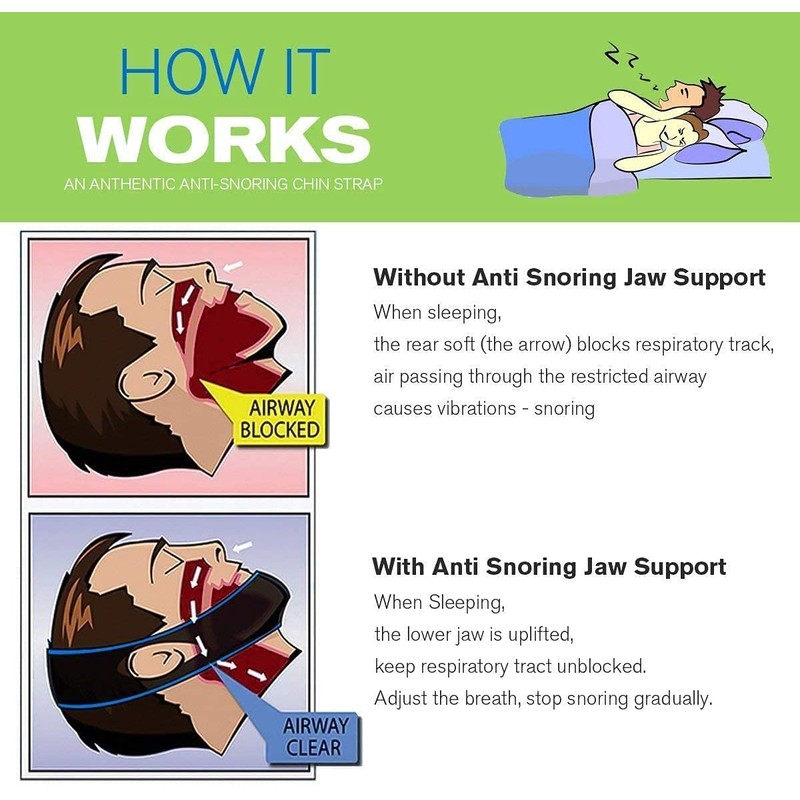- How It Works: The snoring strap keeps the mouth closed while sleeping through physical pressure and keeps breathing with the nose, helping to reduce snoring during sleep and reducing the troubles that snoring brings to our lives.