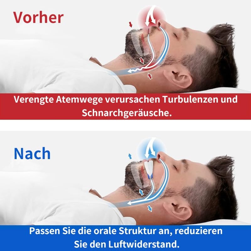- EFFECTIVE SNORING SOLUTION These snoring stoppers move your entire jaw and tongue slightly forward, giving you a wider airway when you lie down, so you don't suffer from poor airflow and snoring when you exhale and inhale.
