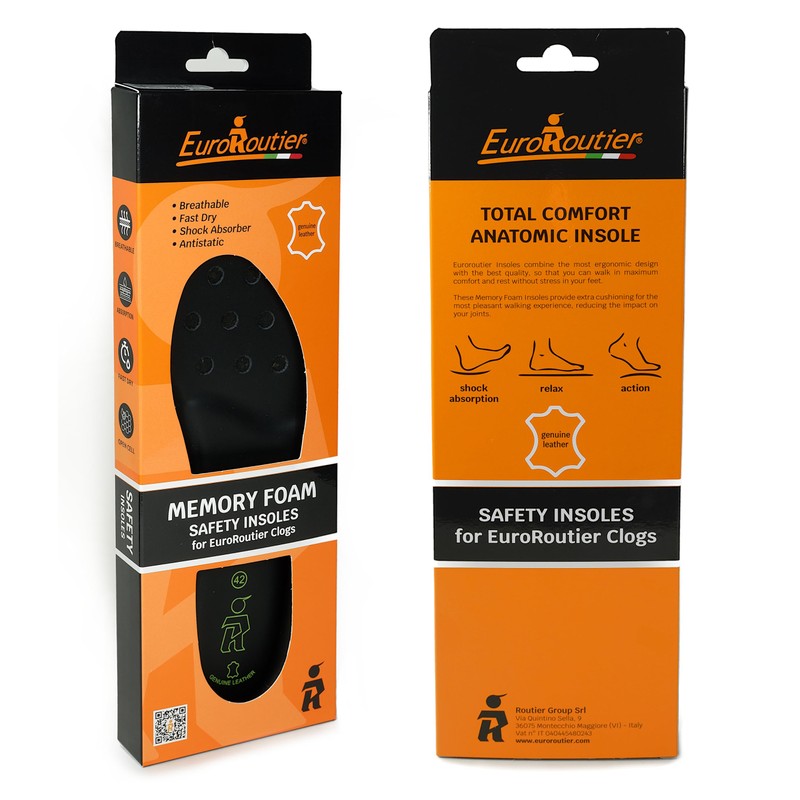 Anti-Static Memory Foam Insoles with Genuine Leather Cover, Comfort Insoles for Safety Shoes (Black, EU 42)