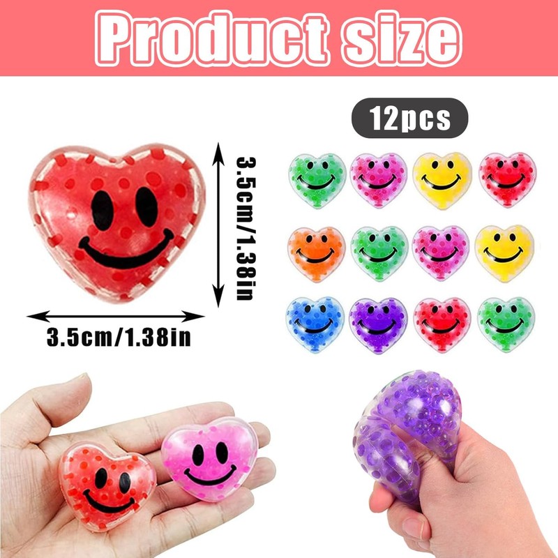 - Our stress balls set contains 8 stress balls in 8 different designs in random colours. The balls have a diameter of 5 cm and fit comfortably in the palm of your hand, which are perfect for emotional relief.