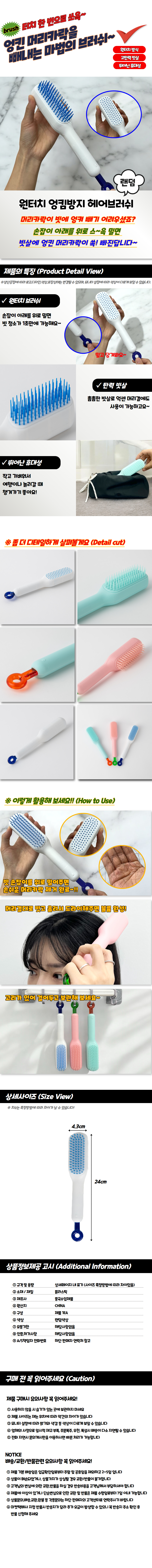 엉킴 방지 헤어브 러쉬 원터치 스타일링 브러쉬 머리카락 정리용