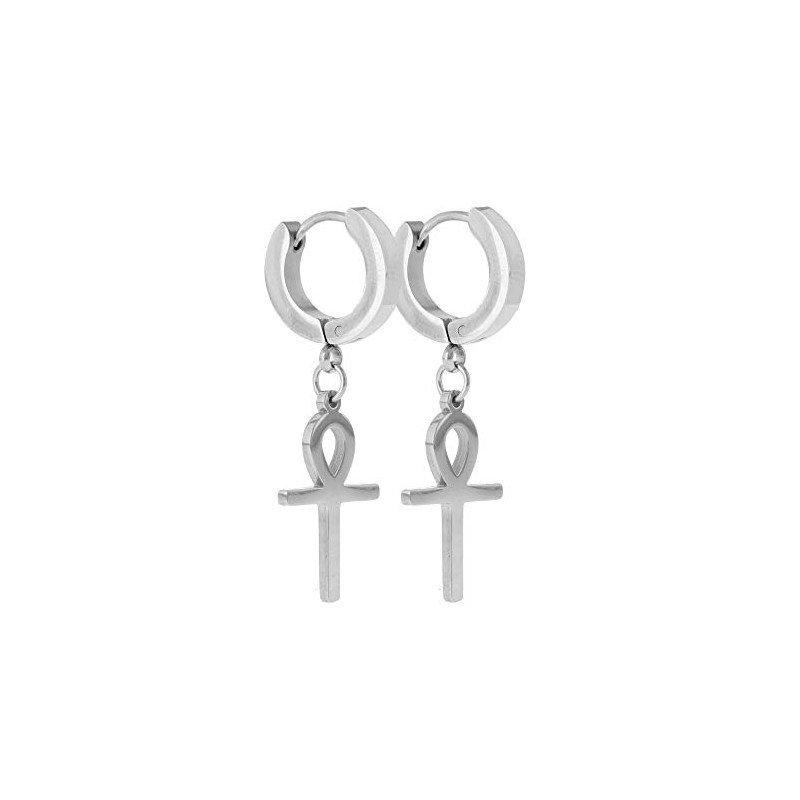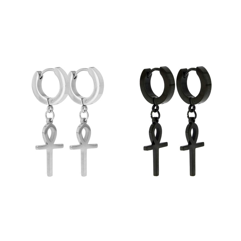 - Ankh cross hoops stainless steel in gold, silver or black color.