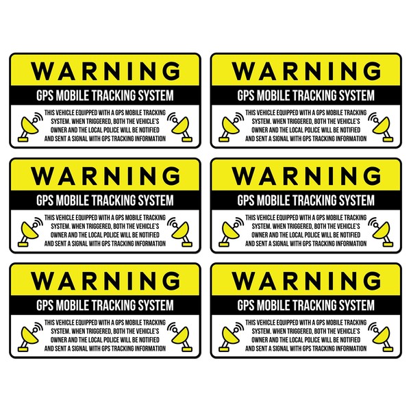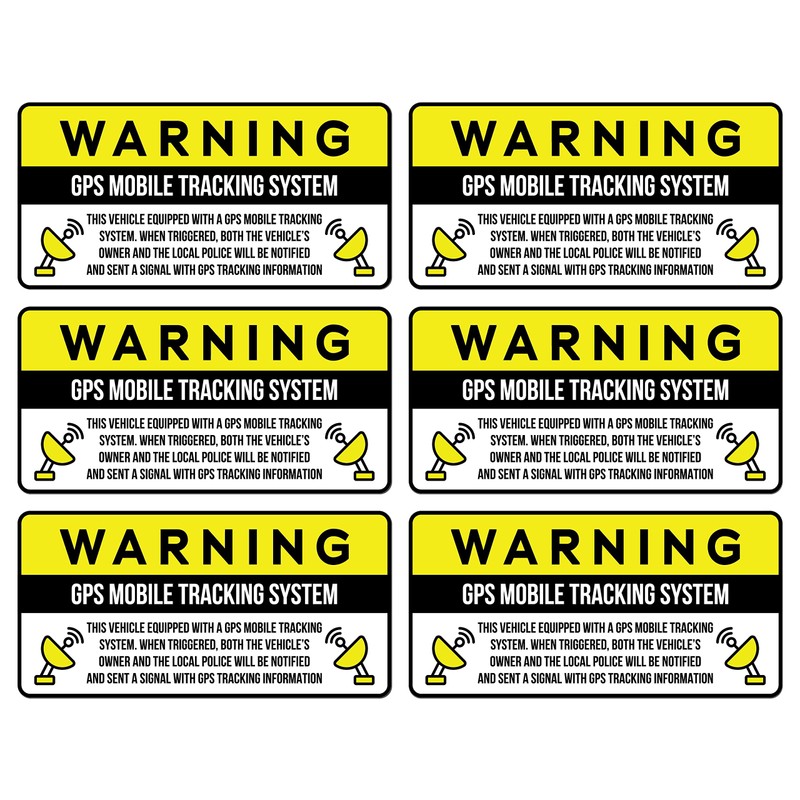 Anti-Theft Car Vehicle Stickers with GPS Tracking Warning (Pack of 6 Decals)