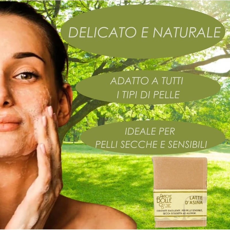 - 100% Made in Italy: made by Antiche bubbles, Sicilian craft laboratory, enriched soap with donkey milk, nourishes the skin and makes it soft, elastic and hydrated