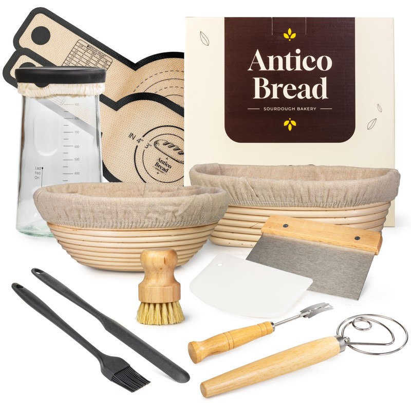 Complete Sourdough Starter Kit for Beginners – Sourdough Bread Kit with Banneton Bread Proofing Baskets & Bowls - Artisan Bread Making Kit with Starter Jar, Lame, Whisk - Full Baking Supplies Set